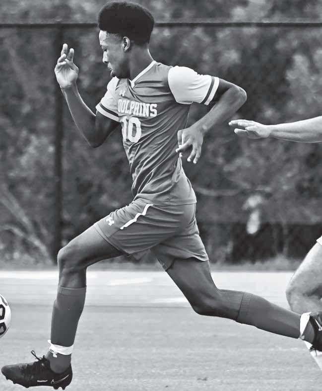 Soccer season is in full swing in Monroe County as Coral Shores’ Brock Bynum (35) blocks a blast from Marathon’s Angel Cardona (22) during the two teams’ matchup on Nov. 8. See page 22. BARRY GAUKEL/Keys Weekly