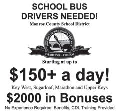 APPLICATIONS AVAILABLE AT WWW.MONROECOUNTY-FL.GOV. For questions, please contact us at careers@monroecounty-fl.gov or 305-292-4557. Veteran’s Preference Available; E.O.E