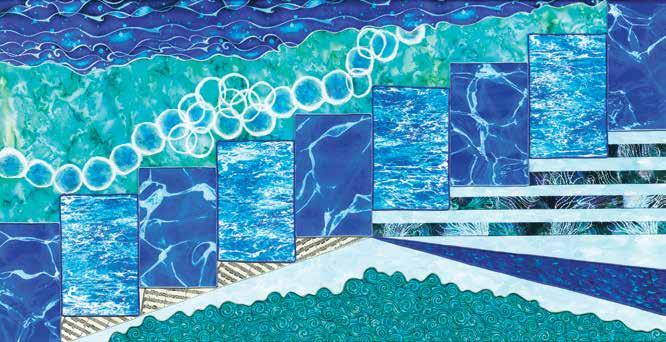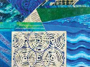 “Although abstract, my mixed media paintings are not without purpose, energy and meaning,” she said. “They are not painted as much as they are built. The nuances of the undercoats, which show through here and there, the gestural brushwork, the elements that I choose to collage and their placement within the composition are all orchestrated to give the piece movement and tension and are meant to act as ‘magnets’ to bring the viewer closer.”