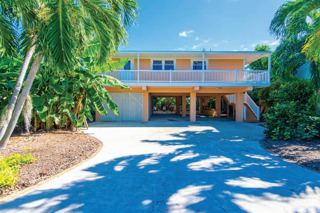 Fantastic retreat on an oversized lot with direct access to enviable fishing and diving within minutes! Open-concept floorplan with high ceilings, large windows, and lovely kitchen. Expansive screened-in lanai connecting to wrap-around porch o ers partial open water views, and breathtaking sunsets! Downstairs features a bonus storage space and covered carport on over a quarter acre private lot adorned with lush tropical landscaping.
