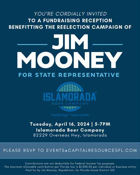 4 UPPER KEYS WEEKLY / APRIL 4, 2024 89240 Overseas Hwy. Suite 2 Tavernier, FL 33070 Office: 305.363.2957 www.keysweekly.com Publisher / Jason Koler jason@keysweekly.com Publishing Partner / Britt Myers britt@keysweekly.com Editor / Jim McCarthy jim@keysweekly.com Digital Editor / Gwen Filosa gwen@keysweekly.com Director of Sales Manuela Carrillo Mobley manuela@keysweekly.com Business Development Jill Miranda Baker jill@keysweekly.com Account Executive Oliver Allison oliver@keysweekly.com Staff Writers Alex Rickert alex@keysweekly.com Mandy Miles mandy@keysweekly.com Copy Editor / Mike Howie mike@keysweekly.com Production Manager Anneke Patterson anneke@keysweekly.com Executive Administrator Charlotte Hruska char@keysweekly.com Design / Pre-Press Diana Striker