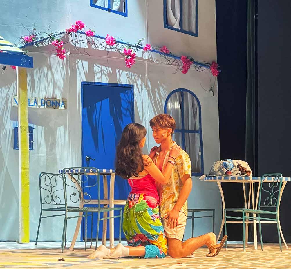 Coral Shores sophomore Karalynn Vaughn and sophomore Sebastian McCoy rehearse a scene from the upcoming theatrical production of ‘Mamma Mia!’