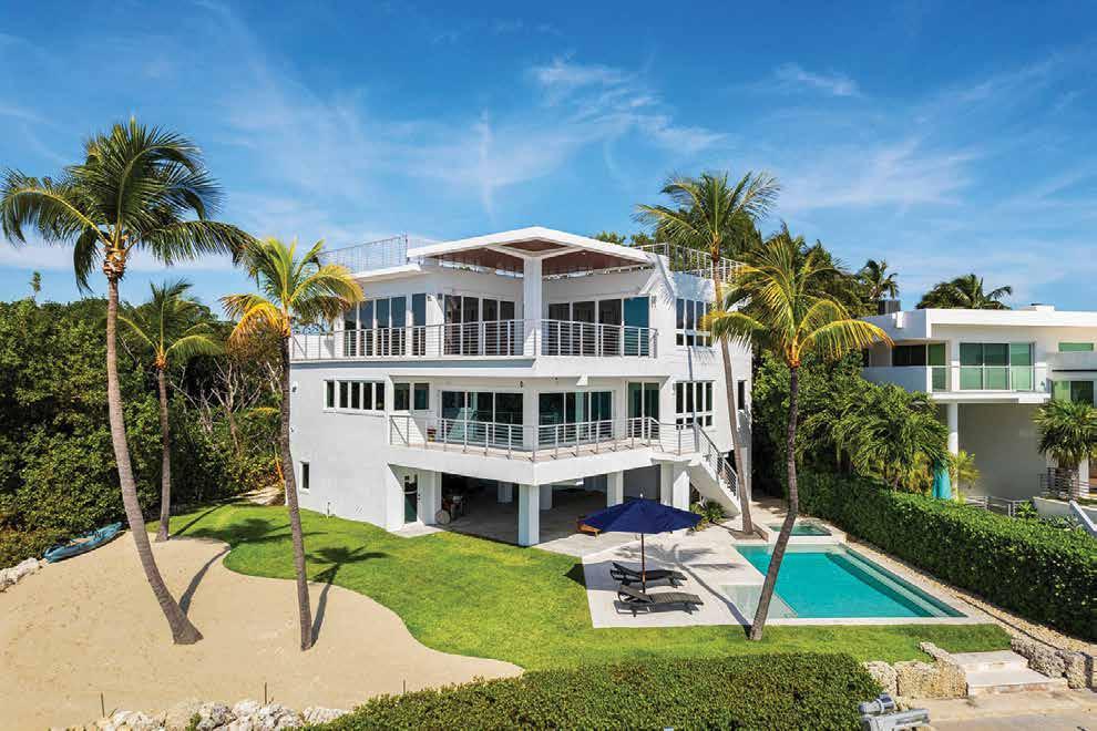 This modern coastal residence boasts an unobstructed 180-degree panorama of the Atlantic Ocean. This all concrete superior built residence spans 3,790 square feet of well appointed indoor living space and 2,580 square ft of exterior terraces for outdoor living. It offers four en-suite bedrooms, custom floor to ceiling kitchen cabinetry, sleek quartz countertops, state-of-the-art smart home infrastructure, custom-made closets, and the convenience of an elevator. This property delivers awe-inspiring ocean vistas from the bedrooms, living spaces, and kitchen, embodying the essence of a tropical paradise. Outdoor gatherings are elevated to new heights with a rooftop deck, multiple terraces and a pool area. The interior elements are curated by John Rudolph Designs. This estate provides the complete package, featuring a prime oversized oceanfront location, gated entry, secure dockage facilities, a boat lift and misting system, all situated on an expansive lot within the tranquil Plantation Key community.