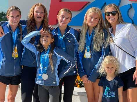 Islamorada’s Synchro Sirens team at the Associations Championships in Sarasota. From left are swimmers Riley Cone, Isabella Cedergreen, Emma Dangel, Natalie Goodwin and Sirena Aguirre. CONTRIBUTED
