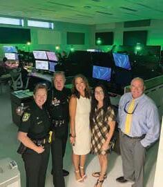 From left, MCSO Lt. Charlene Sprinkle, Sheriff Rick Ramsay, Monroe County’s Shannon Weiner and Kimberly Matthews and MCSO Maj. Don Hiller show off the new EOC’s 911 dispatch center. JASON KOLER/Keys Weekly