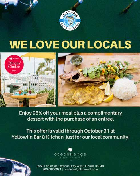 Se habla español THE KEY WEST WEEKLY (ISSN 1944-0812) IS PUBLISHED WEEKLY FOR $125 PER YEAR BY WEEKLY NEWSPAPERS, INC., 9709 OVERSEAS HIGHWAY, MARATHON FL 33050. APPLICATION TO MAIL AT PERIODICALS POSTAGE RATES IS PENDING AT FORT LAUDERDALE FL AND ADDITIONAL MAILING OFFICES.