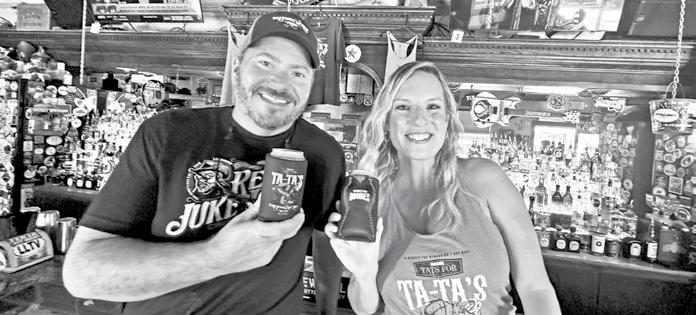 Tattoos & Scars owner Casey Vinall and bartender Maria Gonzalez, who created Tats for Tatas, show off the Boobie Koozies in preparation for the breast cancer benefit on Oct. 9. CONTRIBUTED