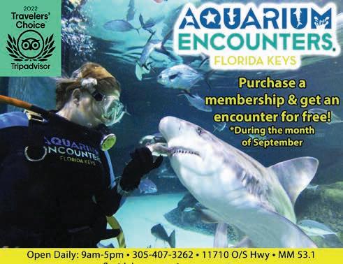 The Florida Keys National Marine Sanctuary Advisory Council will meet at 9 a.m. on Tuesday, Oct. 15, in Marathon. The council will discuss several topics related to the Restoration Blueprint including a timeline update and buoy system plans. Hanna Koch, director of Monroe County’s artificial reef program will also present a program update. A public comment opportunity will be offered at approximately 2 p.m. An agenda and supporting materials will be posted at https://floridakeys. noaa.gov/sac. For questions or information prior to the meeting, please contact Liz Trueblood (elizabeth. trueblood@noaa.gov).