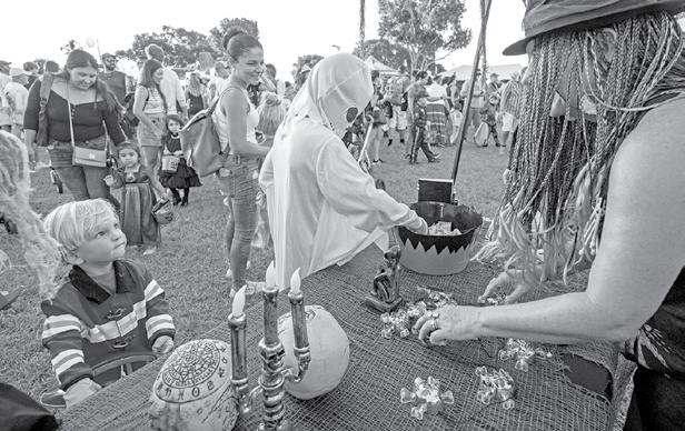 Stephen Anderson, with Mega Parties, walks the crowd on a pair of stilts during the 2023 Trunk or Treat at Founders Park in Islamorada. DOUG FINGER/Keys Weekly File Photo