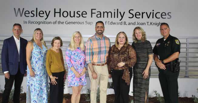 1: Wesley House Family Services board members in front of the new building at 5 Homestead Ave. in Key Largo following a ribbon-cutting ceremony on Nov. 14. From left, Tony Scalera, associate board member; Lorie Leal, governing board member; Alica Calleja, past governing board member and Friend of Wesley House; Pamela Linder, treasurer; Julio Torrado, chair; Aleida Jacobo, CEO; Kristine Pabian, immediate past chair; and sheriff’s Capt. David Smith, secretary. 2: Wesley House Family Services’ new facility is located at the former Lions Club in Key Largo. 3: Deputies get a tour of the new building. 4: The conference room inside the new Wesley House facility. Photos by Jim McCarthy and Cindy Smith.