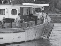 Fishermen haul in lobster traps.