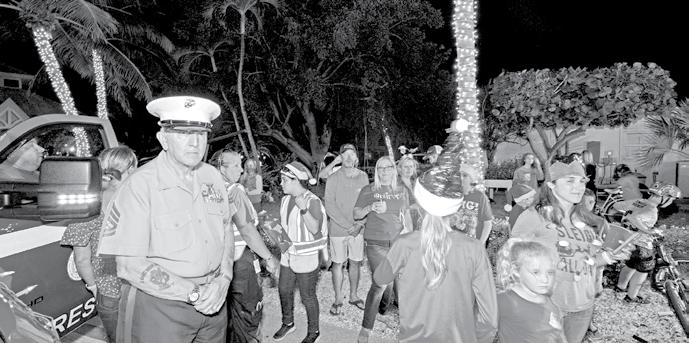 ‘Gunny’ Slagle, pictured far left, joins a parade with Santa through Islamorada neighborhoods to collect unwrapped gifts as part of the Florida Keys Toys for Tots drive in 2021. DOUG FINGER/Keys Weekly File Photo