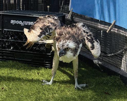 ‘Ollie’ the osprey gets to know his new home at the Marathon Wild Bird Center after being rescued on Monday. KELLY GRINTER/Marathon Wild Bird Center