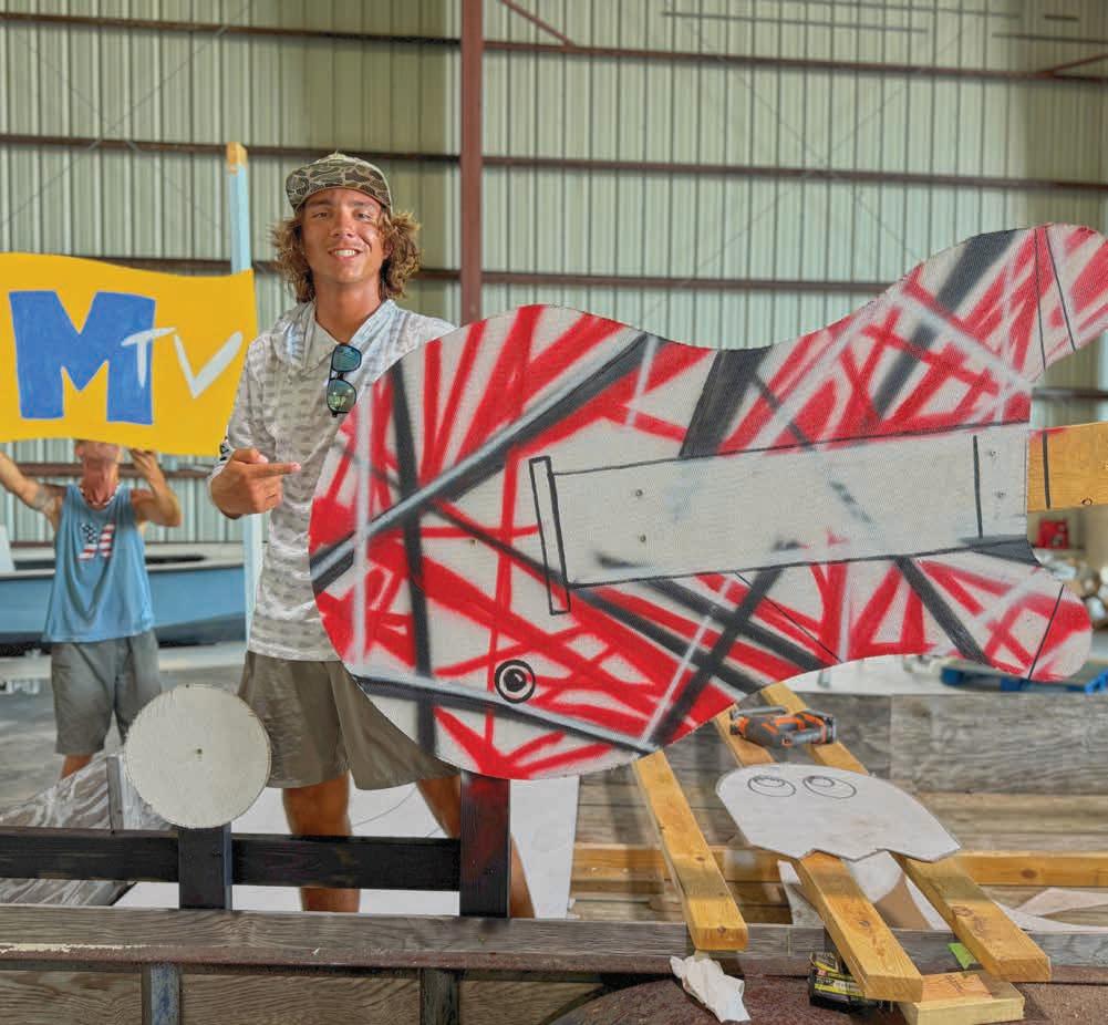 Marathon High School sophomore Kye Daughtry shows off the beginnings of his class’ 1980s-themed homecoming float – complete with an iconic Eddie Van Halen Stratocaster replica. Homecoming festivities begin next Thursday, Oct. 9. See page 22. ALEX RICKERT/Keys Weekly