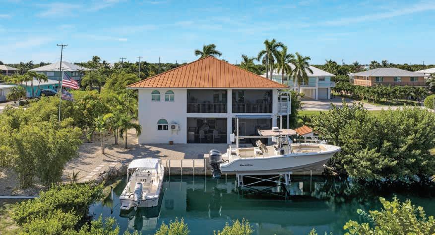 Located in the desirable subdivision of Tropical Bay Estates this elevated waterfront residence offers unparalleled access to both the ocean and bay, just 15 minutes by boat. The iconic No Name Pub is just a 2-minute drive or a 15-minute walk away for some of the best pizza in the Keys. A few property highlights to include: 50' Concrete seawall & concrete patio, lush, low-maintenance landscaping featuring bamboo and a fruit-bearing mango tree. Enclosed courtyard entrance, two oversized screened lanais - one upstairs and one ground level, plus 1,100 sq. ft. enclosed 3-car garage, all impact windows/doors for storm protection. Large primary suite with California closet system, whirlpool tub, walk-in shower, & dual sinks. Waterside and outdoor features include a 15k boat lift, bait cleaning station, underwater fish lights at the dock, crank-out awning dockside, outdoor sink with stainless steel cabinet in the downstairs lanai. A few more items to add to the list: 1,000 lb. Cargo lift, whole-house water filtration & softener system, tankless hot water system, Samsung front-load washer & dryer. In the garage, a refrigerator with ice maker, auxiliary power panel for generator, 13,000-watt dual-fuel generator, 250 lb. ice maker, two deep freezers, two insulated hurricane-rated garage doors with openers. This meticulously maintained home offers a blend of comfort, durability, and waterfront convenience.