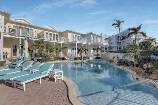 Tastefully remodeled 3BR/2.5BA Coral Lagoon townhome with soaring ceilings and open-concept living. Updated kitchen, covered porch, and deeded 40’ dock just steps from your door. Upstairs primary suite with private balcony and canal views, plus two guest bedrooms. Enjoy the heated community pool, quick access to fuel and open water, and the added benefit of an established vacation rental.