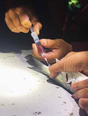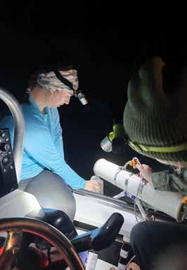 for new research, but all with a desire to help. Sampling started in January 2024 with multiple organizations traveling to the Florida Keys to collect water and fish samples. LKGA guides were poised and ready to help, greeting visiting scientists with Keys hospitality providing boats ready to take them to active sites for collections, offering community connections, and in some cases, even a place to stay on short notice. Sampling would continue through the spring and summer, and to date, hundreds of water, fish, and algal samples have been taken and analyzed. Many possible causes have been ruled out like red tide, parasites, or common water quality issues like unusual dissolved oxygen or low/high salinity. However, some things have revealed themselves as possible clues, including elevated levels of toxin-producing algae, Gambiersicus spp., but no absolute cause has been identified. The research continues. Also ongoing is an open flow of information-sharing between the fishing and scientific communities, which came to each other’s rescue in a big