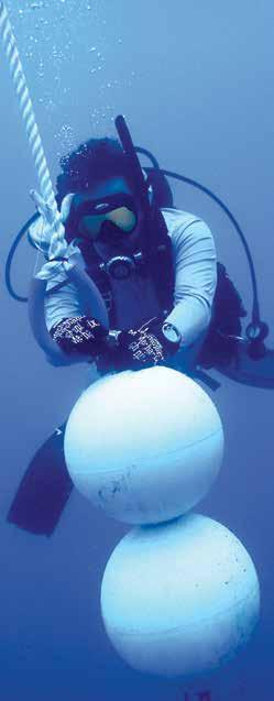 Helmers draped in buoy hardware that he fashioned before placing in sanctuary waters.