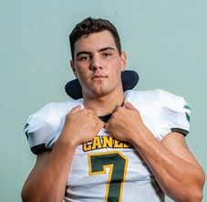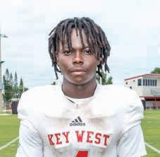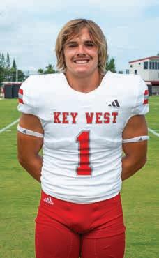 Senior Jaden Fox was the heart of Key West’s unstoppable scoring machine. Fox rushed for 1,731 yards this season, 17th in the entire state. In 3A, he was third in rushing yards, fourth in total points with 132 and fourth in touchdowns scored with 21. Despite being in the same district as perennial powerhouse and eventual state champion Miami Northwestern, Fox led FHSAA’s 3A District 16 in rushing yards, total points and touchdowns scored, and was second in total yards only behind a Northwestern player with the advantage of additional games. Fox led the team on and off the field, providing leadership and guidance to the underclassmen and setting a pristine example of Conch pride. His coach was keenly aware of the asset he had in Fox; despite his wellknown willingness to gamble on fourth-down situations, head coach Johnny Hughes had no intention of gambling on the health of his star running back by playing him on defense. When injuries plagued the Conchs, Hughes had little choice in personnel, and Fox tore up the field defensively, too. In limited defensive play, Fox had 38 tackles plus a pair of interceptions, one of which he carried into the end zone.