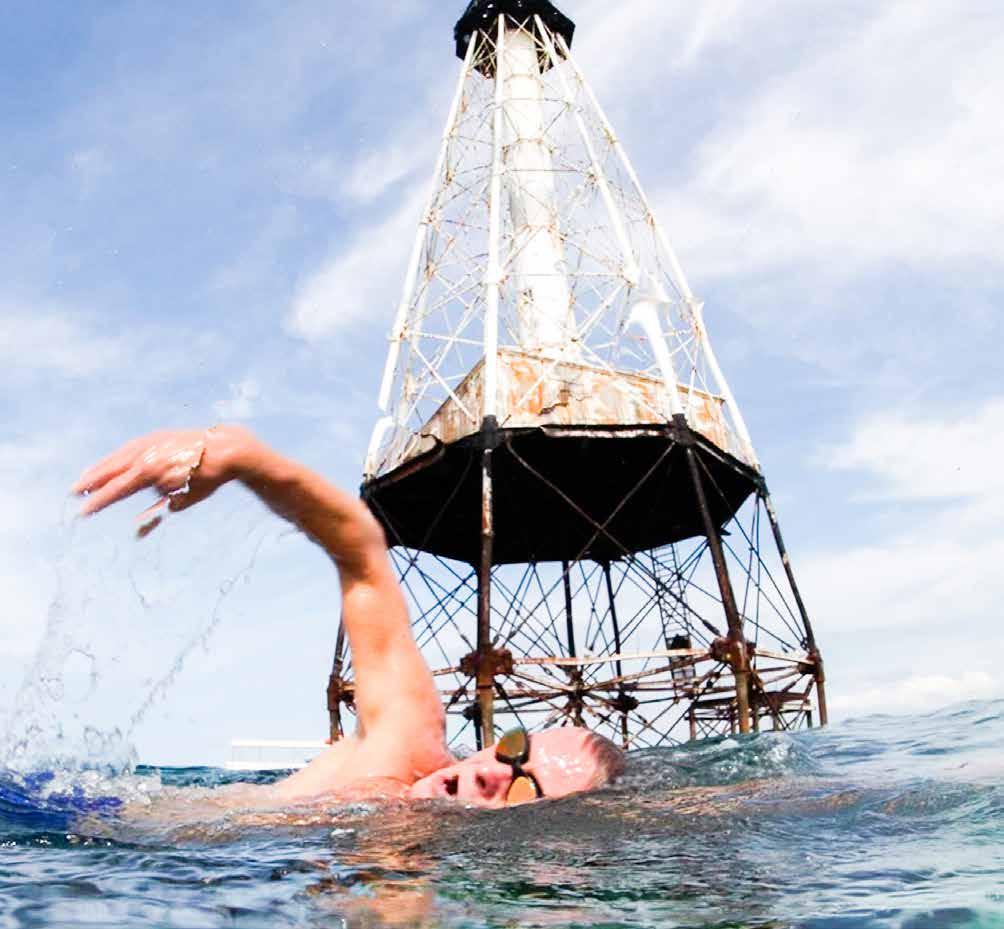 Rob Dixon practices for the grueling 8-mile Swim for Alligator Lighthouse event in 2023. Dixon is the only swimmer to complete all of the swims solo since the event started in 2013. STEPHEN FRINK/ Contributed