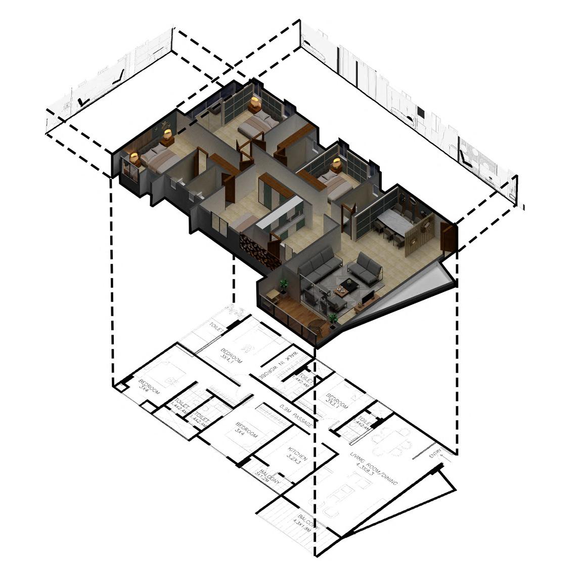 Gallery Elevator Core Staircase Core Standard Rooms Amenity Area with Swimming pool Surface Parking Exit Gate Entry Gate Service Floor Exploded Isometric-
