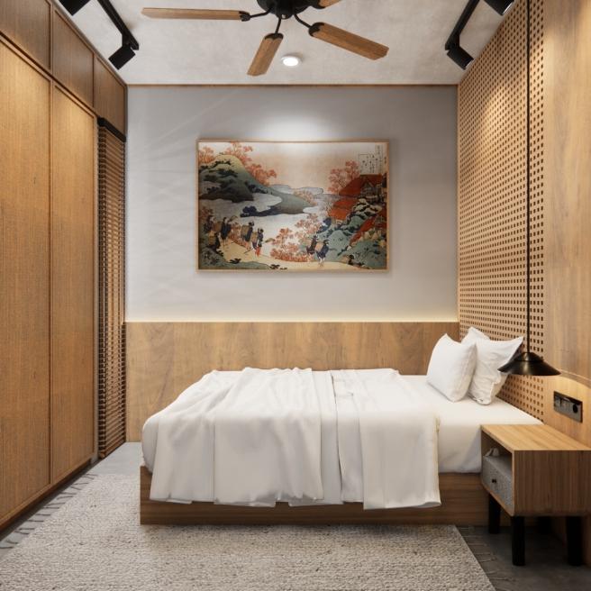 Miss Stefani's house interior design project is located in South Tangerang. She wants to apply the Japandi interior concept to the house. The dominant palette used is wood color,concretelime,andwhitepaint.