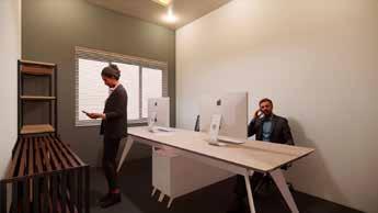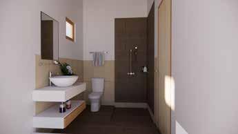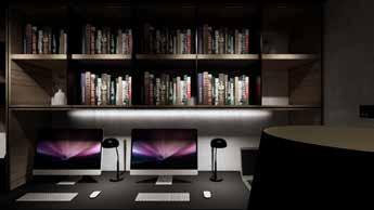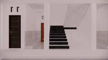 Klien menginginkan suasana interior yang hangat dengan menampilkan material kayu dan cat finishin broken white. Furnitur didominasi GRC dengan finishing HPL dengan motif kayu dan doff hitam