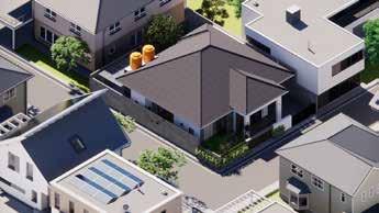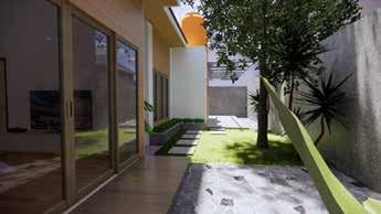 Klien menginginkan pagar pekarangan yang tidak monoton dengan tampilan kayu. pagar dibuat menjadi 3 tampilan dan tembok menggunakan finishing HPL dan cat motif beton ekspos