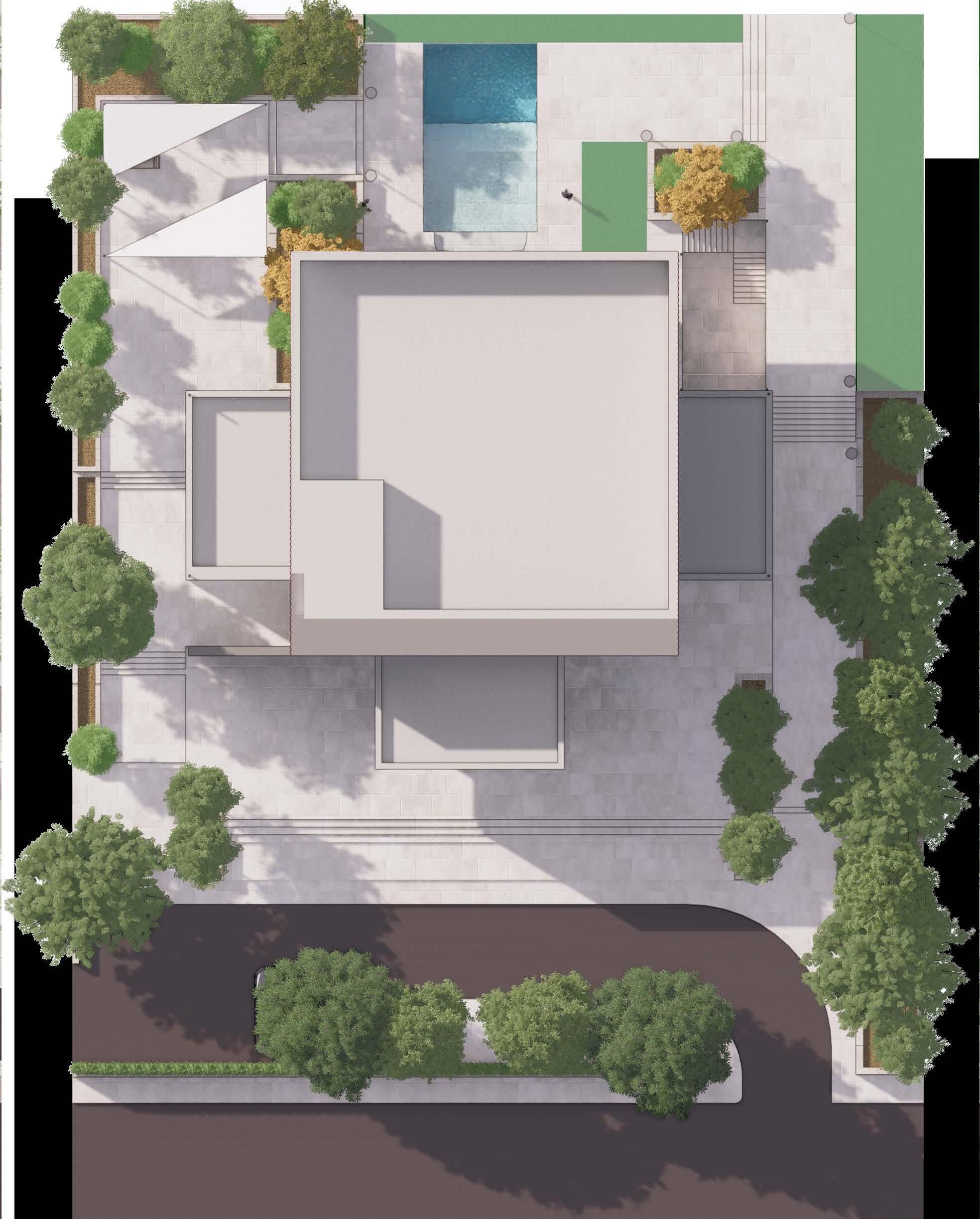 Rich vegetation, especially orange trees iconic to Jabal Al-Weibdeh, allows for natural integration into the design. The 24-meter elevation difference requires multi-level zoning and terracing, ensuring accessibility and maximizing panoramic city views.