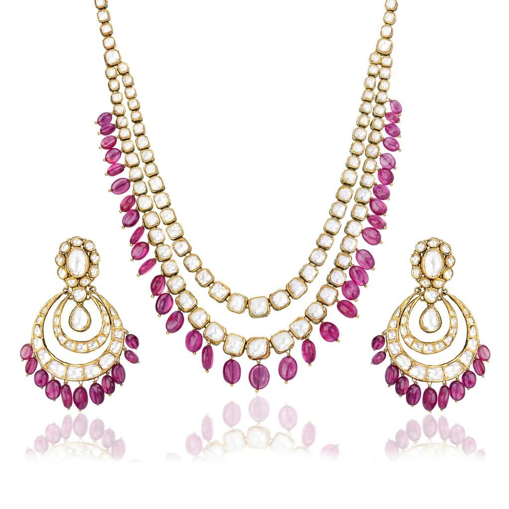 Khanna Jewellers’ Polki necklace sets bring vintage glamour and modern finesse together. Handcrafted to perfection, each piece shines with uncut diamonds that feel raw, regal, and radiant. Ideal for brides and women who love jewellery that speaks of heritage, confidence, and a bold, luminous