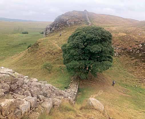 along the more challeng ing and rewarding middle section of the hike from the village of Humshaugh to Gilsland, was by far the most scenic and picturesque section.Thephoto shows Syc amore Gap, which was featured in a scene from the Robin Hood Price of Thieves, starring Kevin Costner. English summers are generally mild and unpredict able, particularly in this part of the Fortunately,England.during the hike