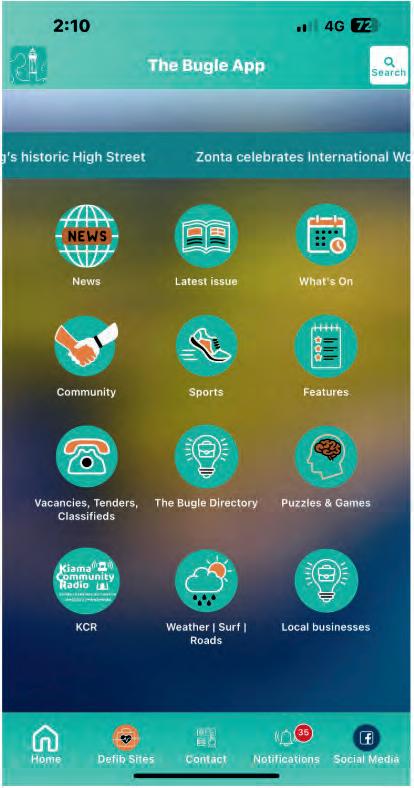 The Bugle newspaper is brought to you by locals weekly and available free throughout the Kiama LGA. Get daily news updates and the digital edition anytime via The Bugle app or at www.thebuglenews. com.au