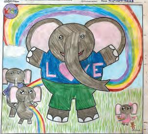 Our judges were elated with the exemplary submissions mailed in as part of this month’s coloring contest. Annika, 9, brightened her lovely creation with swirling rainbows and added mini elephants. Six-year-old Legend sent us a striped elephant ready to dive for peanuts. Georgia, 5, submitted an elephant decked out in pink and pumped up to do yoga. Thanks to all who entered! We can’t wait to see what you have in store this time.