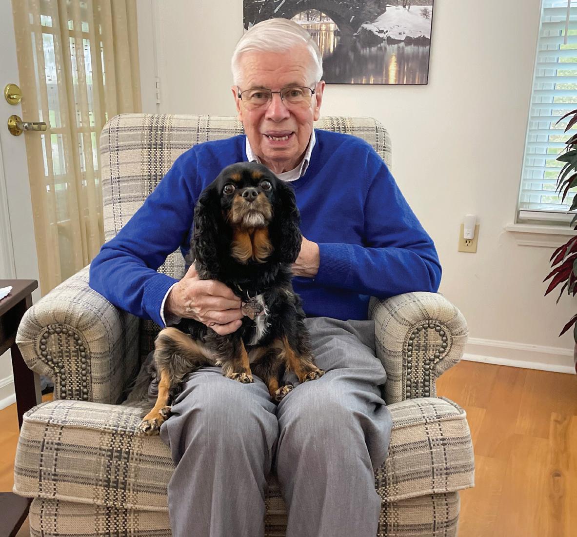 Father Bob Yeazel, below, who retired in 2017, poses with his 6-year-old pup, Sophie. Sophie is a Cavalier King Charles. “She is a great companion,” he said.