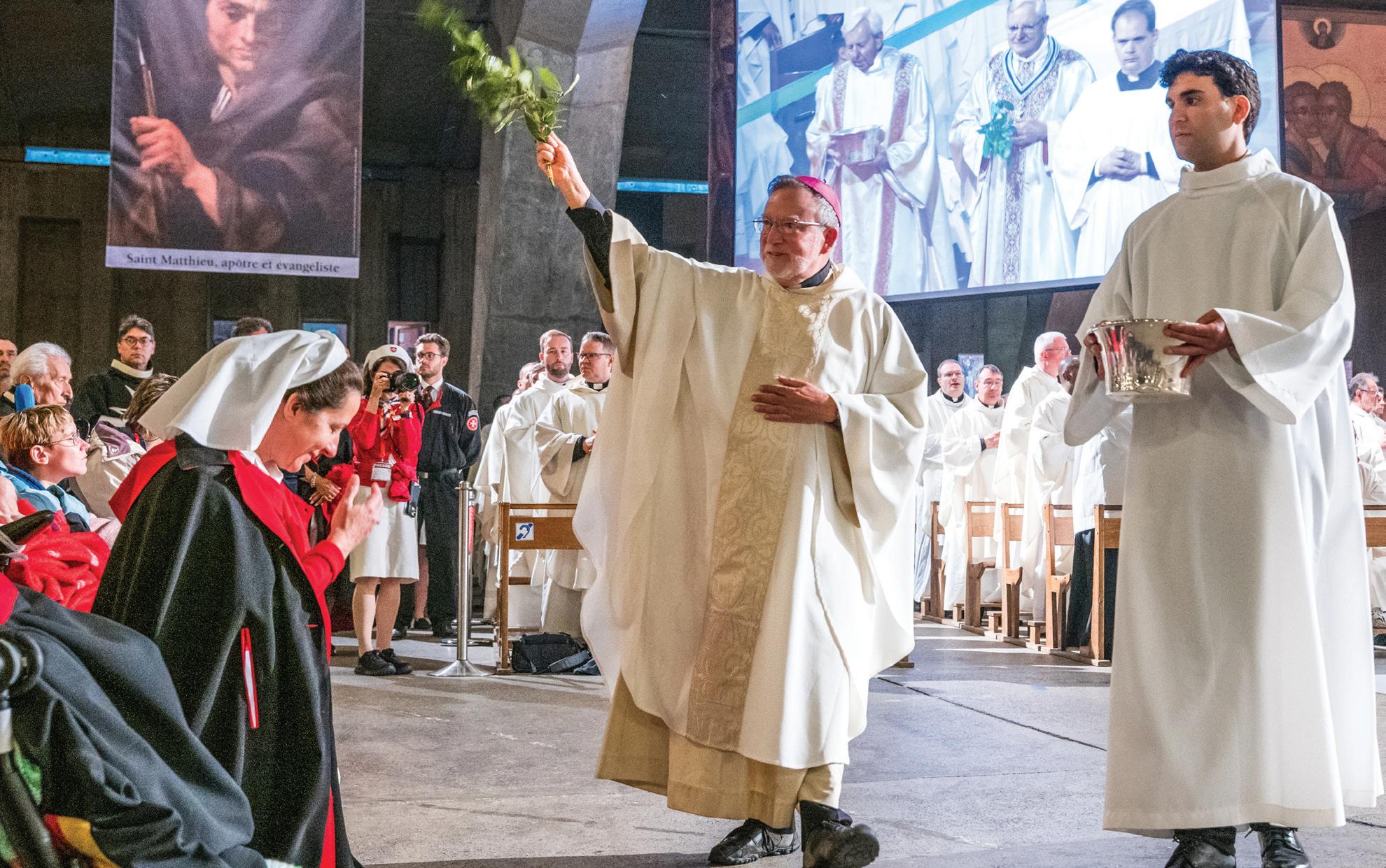 Malta, referenced above, is the Sovereign Military Order of Malta. For one week each May, Knights and Dames from around the world make a pilgrimage to Lourdes, France, not for themselves but for those they have pledged to serve. It’s a 970-yearold tradition. Their familiar uniforms, adorned with the eight-point Maltese Cross, are worn by members, candidates, and other volunteers on the trip. I had the humble privilege of being invited along as a volunteer this year. The Malta representatives seem to be everywhere as nearly 7,000 Knights, Dames, volunteers, and Malades converge on the small town that was home to Bernadette Soubirous. Her story of faith began in 1848; Malta’s history goes back much further.