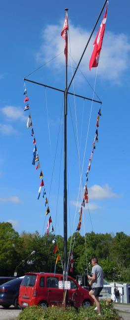 ➢ Følg flagreglerne: Når man ligger i havn eller for svaj, hejses flaget ved solopgang, dog tidligst kl. 8. Flaget tages ned ved solnedgang