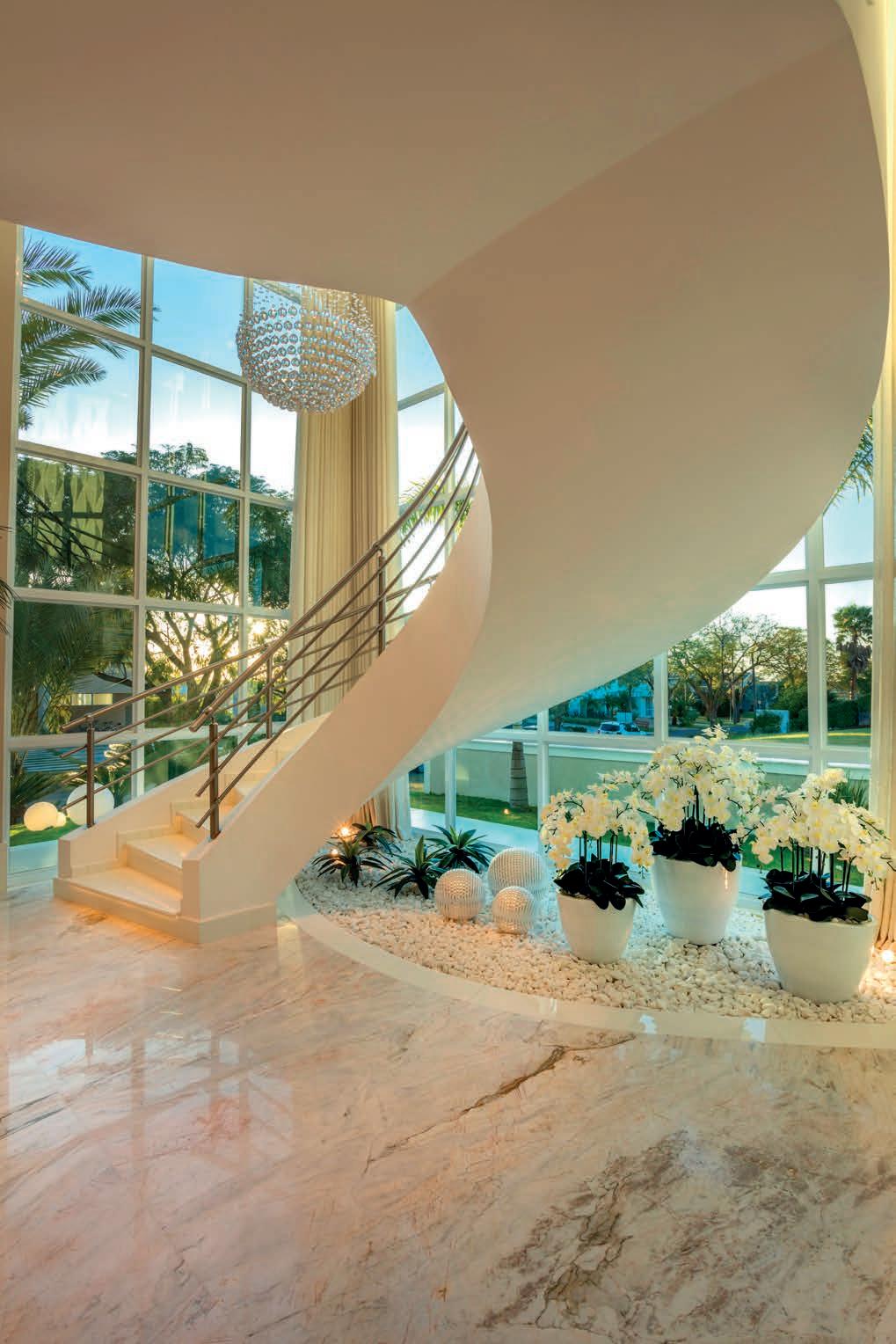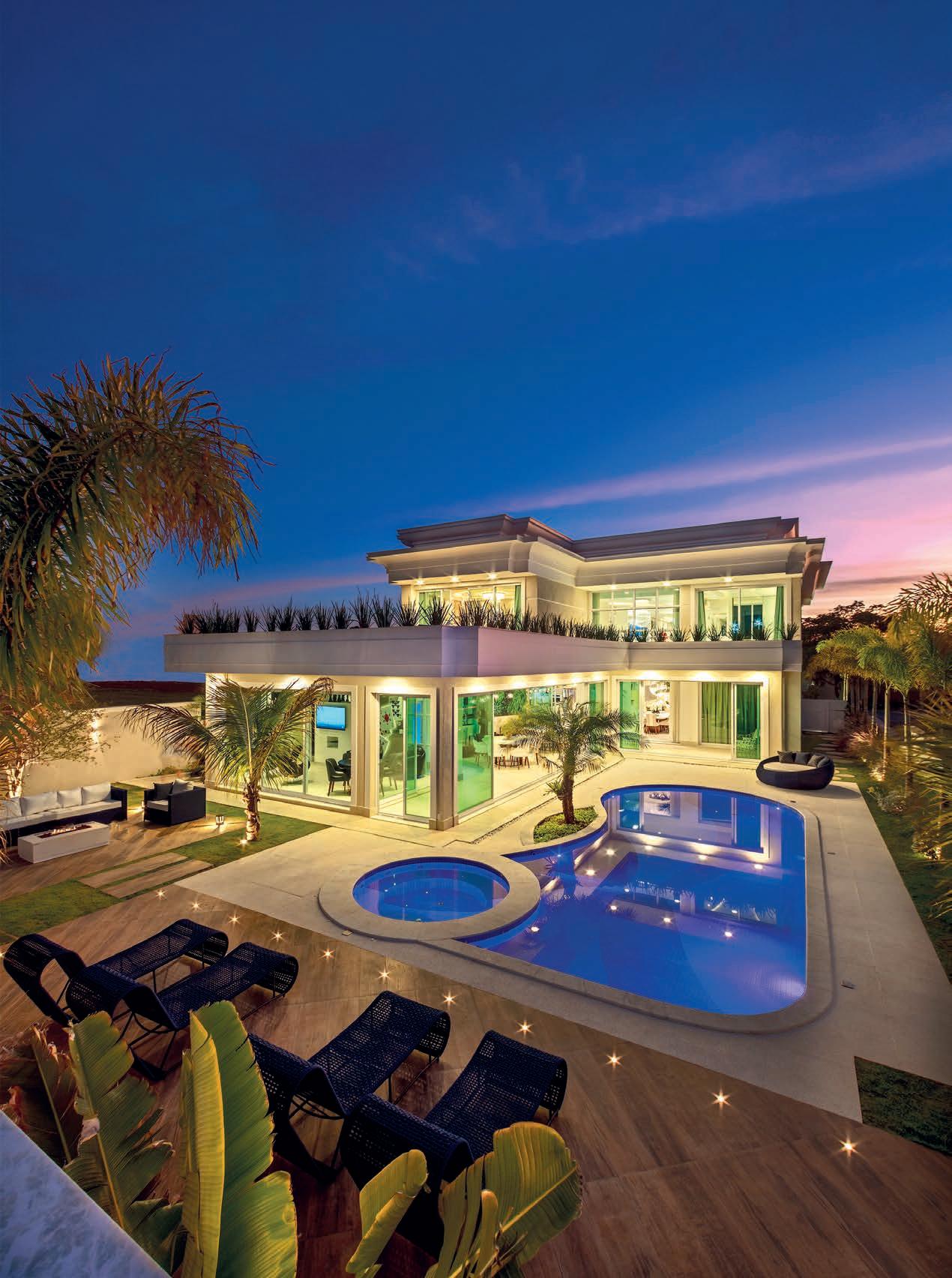 Mesmo sendo térrea, ela foi concebida com pé direito duplo, o que conferiu imponência e requinte ao imóvel. O terreno de esquina compacto, acomodou perfeitamente a construção, com todos os desejos da família.