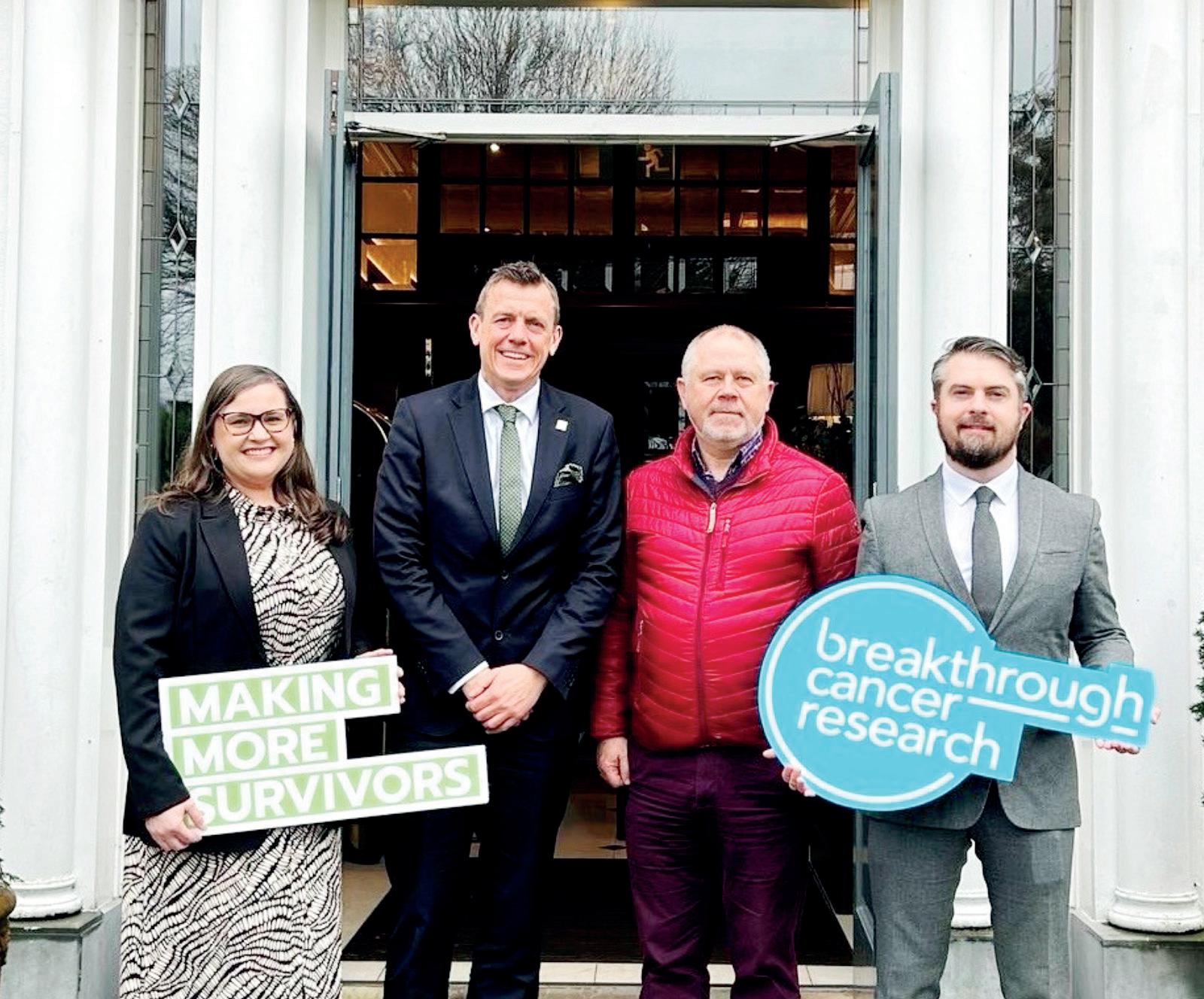 Cara McDowell, Operational Excellence Manager, Hayfield Family Collection;Michael Jacobi, Managing Director, Hayfield Family Collection; Dick White, Corporate and Partnerships Manager, Breakthrough Cancer Research; Sean Cooney, Group Marketing Manager, Hayfield Family Collection