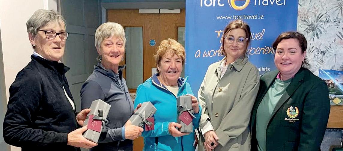 RESULTS: International Women’s Day Ladies Scramble very kindly sponsored by Torc Travel Ltd. A big thank you to Áine O’Donoghue of TORC TRAVEL who sponsored Saturday's scramble for International Women’s Day. There was a great turnout and fantastic scores. Well done everyone and congratulations to the prize winners. Winners Susan Shorten, Kathleen Fitzgerald, Doreen Brosnan and Kate O’Leary. 2nd place Mary McGuire, Ailish Mulcahy and Mary McCarrick. 3rd place Miriam Hickey. Kaye Cremin, Susan Good and Bridie Brosnan.