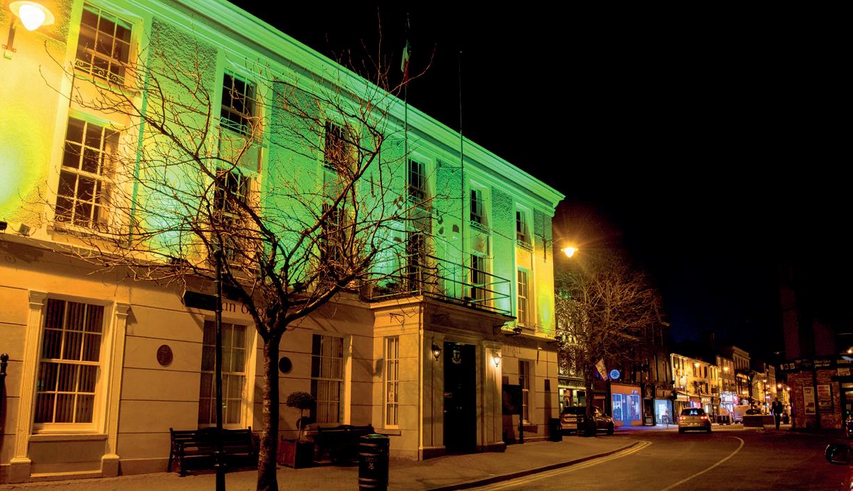 is turning green for the St Patrick’s Festival, with buildings across the town illuminated all this week.