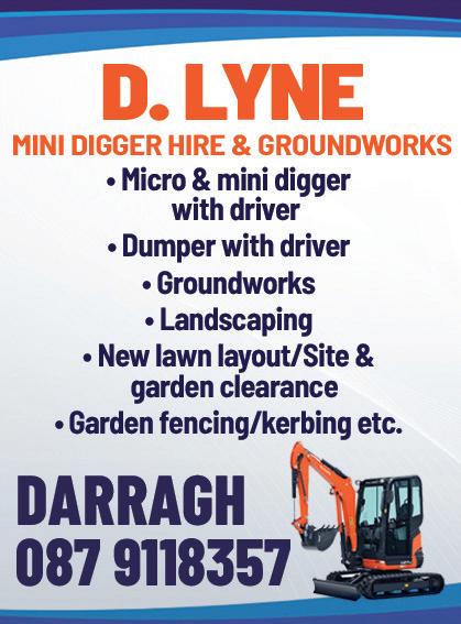 support would be greatly appreciated. LOTTO: There was no winner of the Glenflesk Lotto which took place on 03/03/25. Jackpot €5,200. Numbers drawn: 2, 7, 13, 26. Consolation prizes of €50: Noreen Murphy (Online), Sean Kelly (c/o Brendan Brosnan), Brendan Brosnan (Sellers Prize), Fionnuala Kelly, Shronedraugh. Next draw will take place on 18/3/25. Jackpot €5,400. Thanks to all who support our Lotto, our sellers & Diarmuid Lynch Plumbing & Heating for sponsoring the tickets.