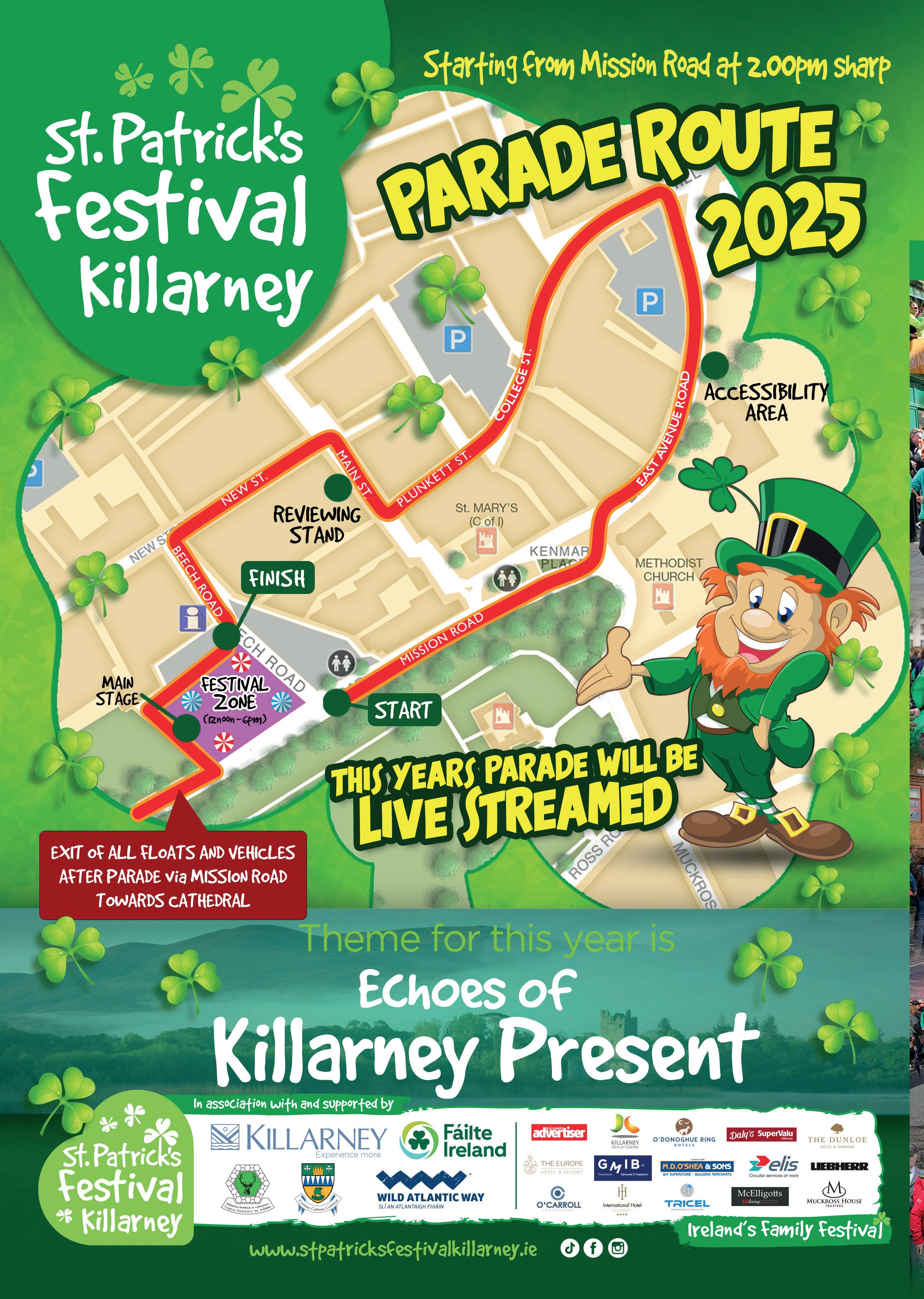 The theme for the St Patrick's Day Parade on March 17 is ‘Echoes of Killarney Present’, celebrating the town's natural beauty and modern-day character.