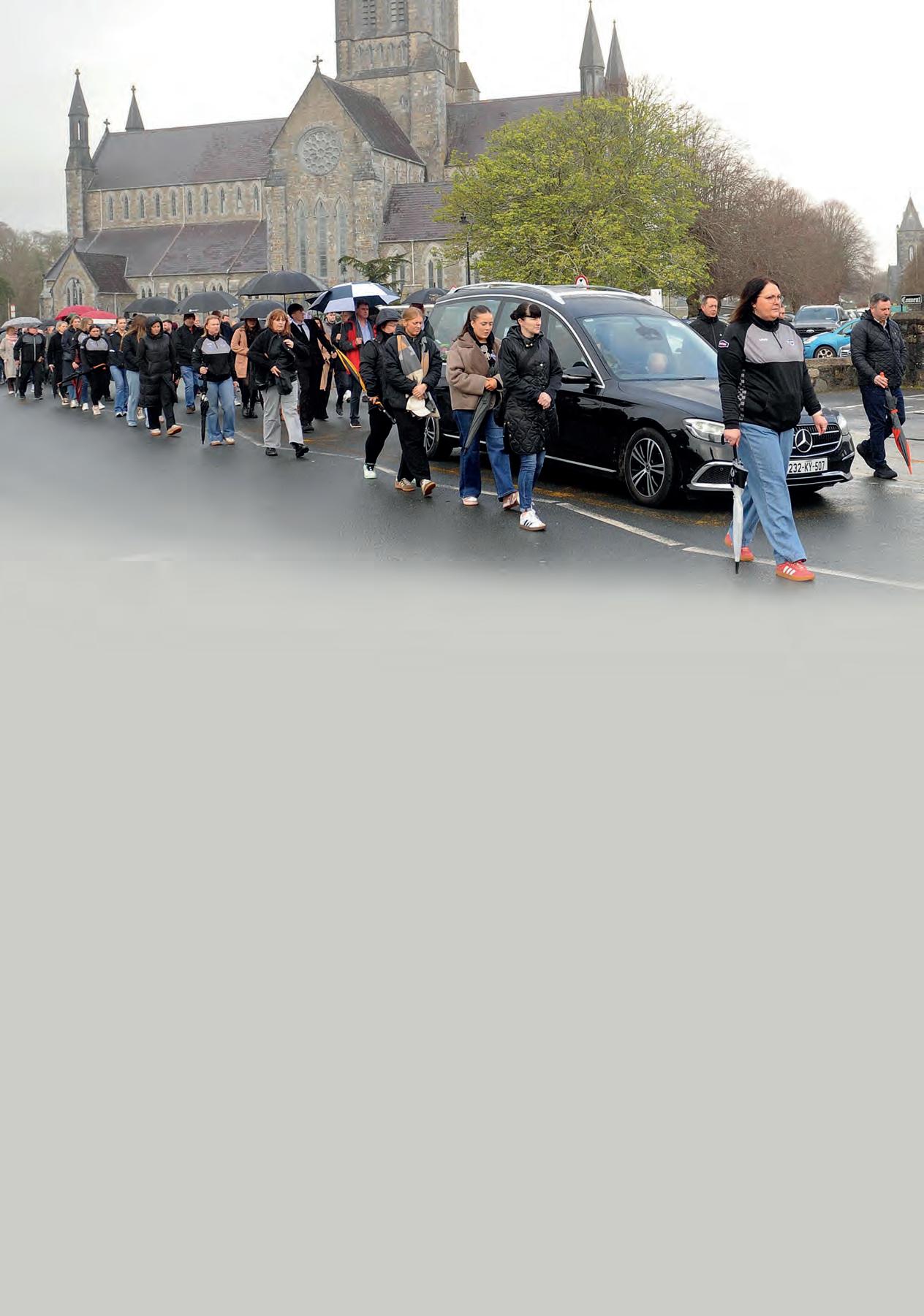 On Wednesday morning, the bells of St Agatha's parish church rang out across the valley, casting a veil of immense sadness over Glenflesk as countless more gathered to say their final farewell to a man who touched so many. With a large number anticipated, a marquee was erected on the grounds of St Agatha's, and the crowds still overwhelmed our little church, spilling into the car park and lining the main road. Again, an army of volunteers assisted by An Garda Síochána marshalled proceedings, all of which accompanied Ollie's funeral cortege to Killaha Graveyard, where his family and friends bid their final farewells.