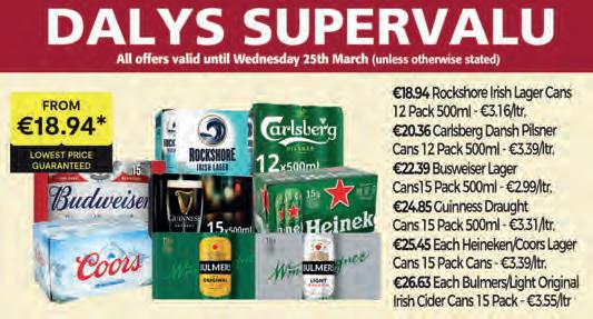 €7,000. Numbers drawn were 13, 16, 21, 23. Consolation prizes of €50 went to Joe Scanlon, Ballinmanagh, Sean Reidy, Coolick, JD O’Sullivan, Mike O’Leary, Knocklebede. Our next draw will be on Monday 23rd March for Jackpot of €7,250. Thank you for your continued support.