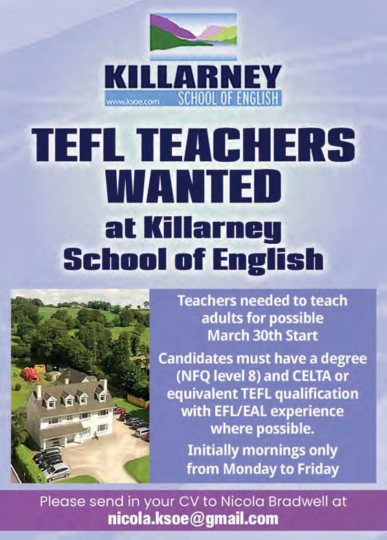 KILCUMMIN COMMUNITY CARE: Kilcummin Community Care are holding their A.G.M. on the 24th March at 7.30 in the Rural Development Office. We offer a valuable community service that enables senior citizens to get together once a week (every Tuesday from 11am-2pm in the G.A.A. club) for tea, chat, games and music. We offer transportation, a cooked lunch, activities, music and invited guest speakers. If you or anyone that you know in the community wish to attend, please contact Mary Doyle on 086 1550803 for more information. Our A.G.M. is open to everybody, if you are interested in volun-
