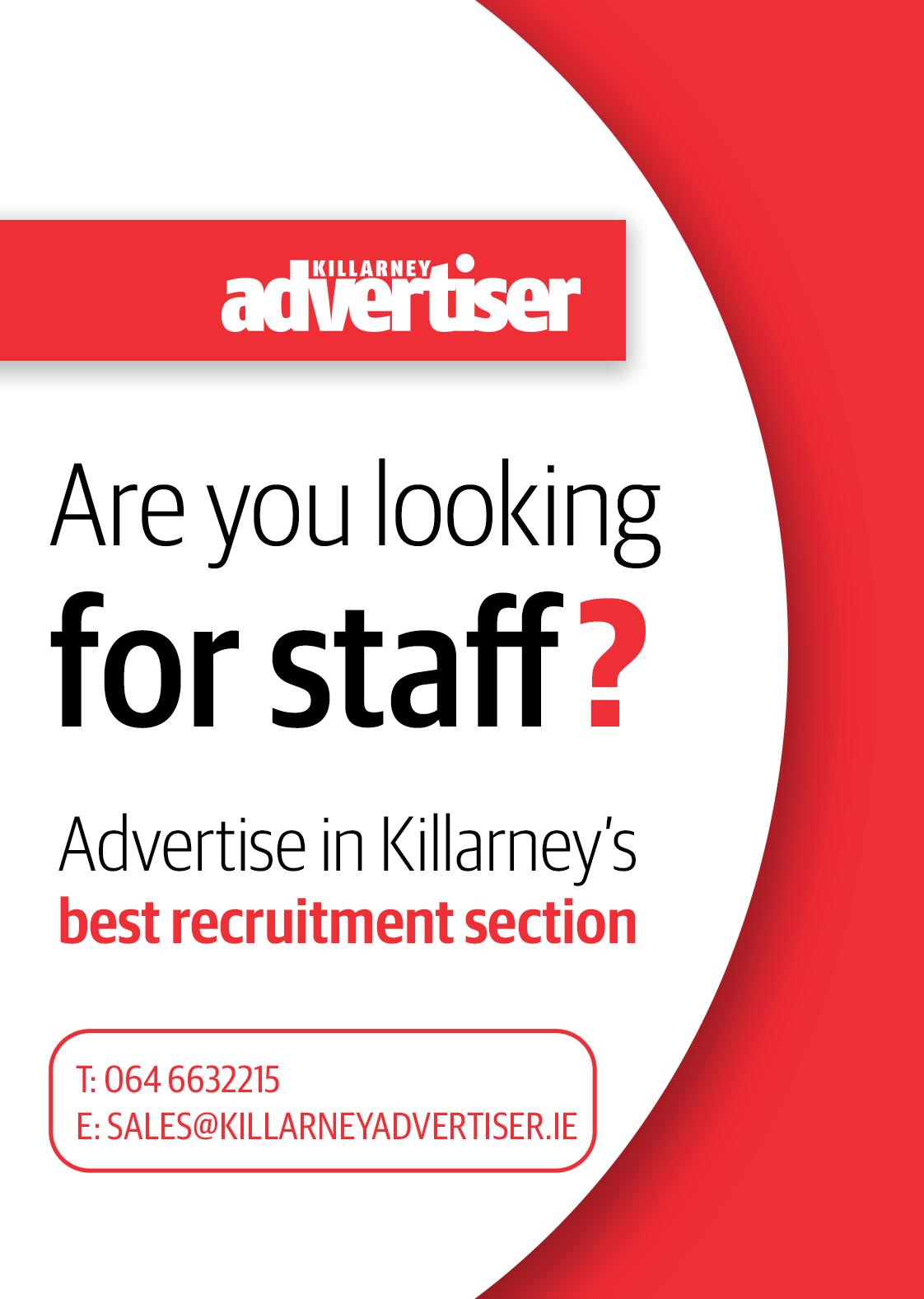 KILCUMMIN RURAL DEVELOPMENT OFFICE: Vacancies presently exist on the Kilcummin Rural Dev. C.E. Scheme for the position of Caretaker/ Cleaner, and gardener in KASI Gardens. These positions are a development opportunity and no experience necessary. Accredited training will be provided to support your career. Please contact your Local Dep. of Social Protection employment services/Intreo office to check your eligibility. To apply please forward your C.V. & P.P.S. number to The Supervisor, Kilcummin Rural Development Office by post or email info@ kilcumminparish.com. For further information contact Helen on 089 4756774.