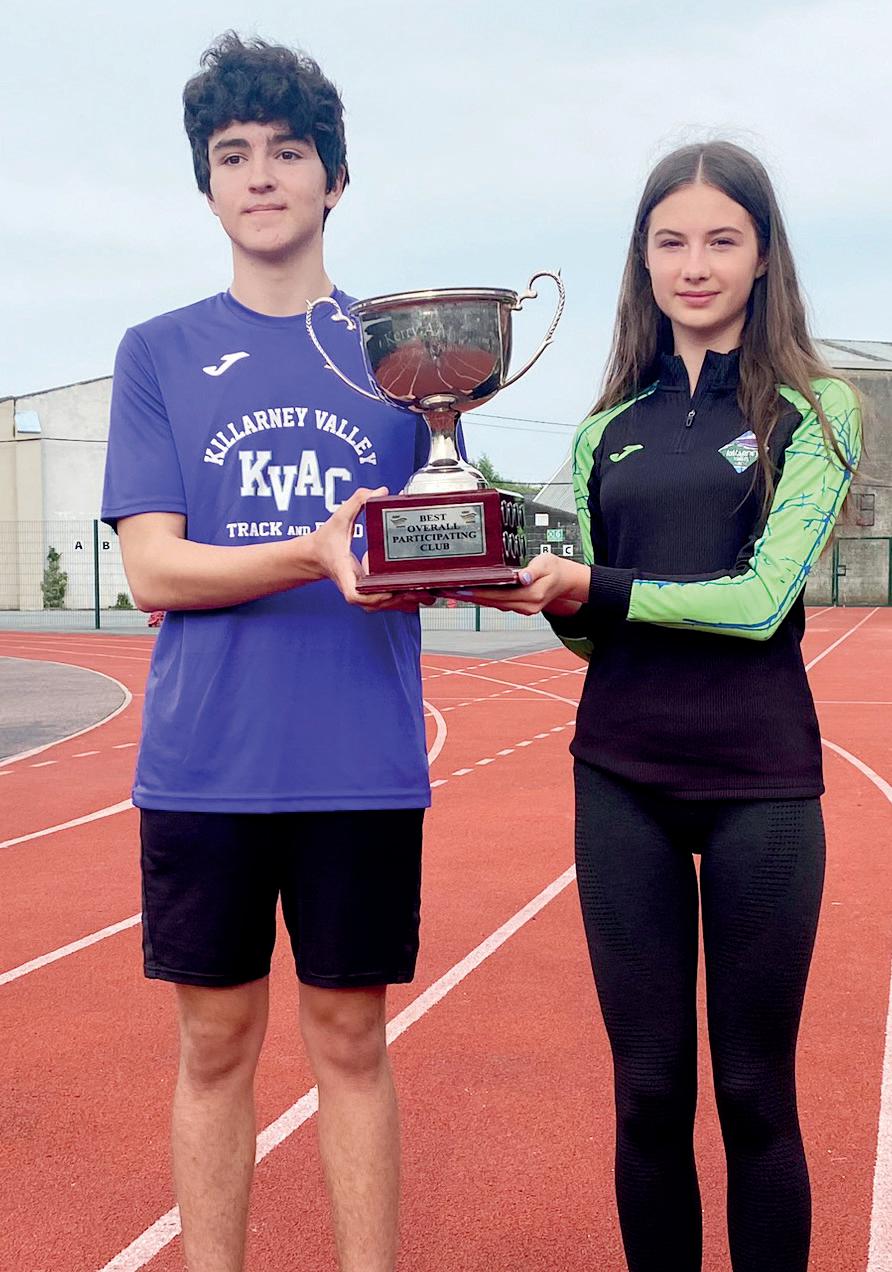 COUNTY: The Kerry County Senior and Master Track & Field Championships was held in Castleisland last Sunday. The Club had both a Men’s and Women’s Senior Team competing on the day. The Killarney Valley AC Women’s Senior Team, led by Captains Madie Wilson Walker and Selina Collins received the Christina O’Shea Memorial Cup. Congrats and Well done to all athletes involved, Anna O’Shea, Mollie O’Riordan, Dara McCarthy, Hanna Hryhoreva, Grace O’Meara, Hannah Collins, Krystyna Paliy, Christine Cooper, Amy Garvanovic, Maureen O’Shea, Ellie O’Shea and of course our 2 captains Madie Wilson Walker and Selina Collins. The Senior Men’s Team, led by Captains Eoin O’Reilly and Oisin Lynch won The Quill Cup for the 3rd year in a row. Athletes involved were Cian O’Brien, Oisin O’Regan, Dominik Wasila, Dylan Manning, Bartek Zglinski, Eoin O’Reilly, Naoise Daly, Jehven Kubanov, Noel Rice, Derek Pyne, Keelan Veerasoo, Dara Looney, Tomas Griffin, Sam Griffin, Stan Garvanovic, Alan Delaney, Tim Horgan, and Jordan Lee. In the Master Category, Niall Byrne won the M40 3K, Orla Nic Suibhne received silver in the
