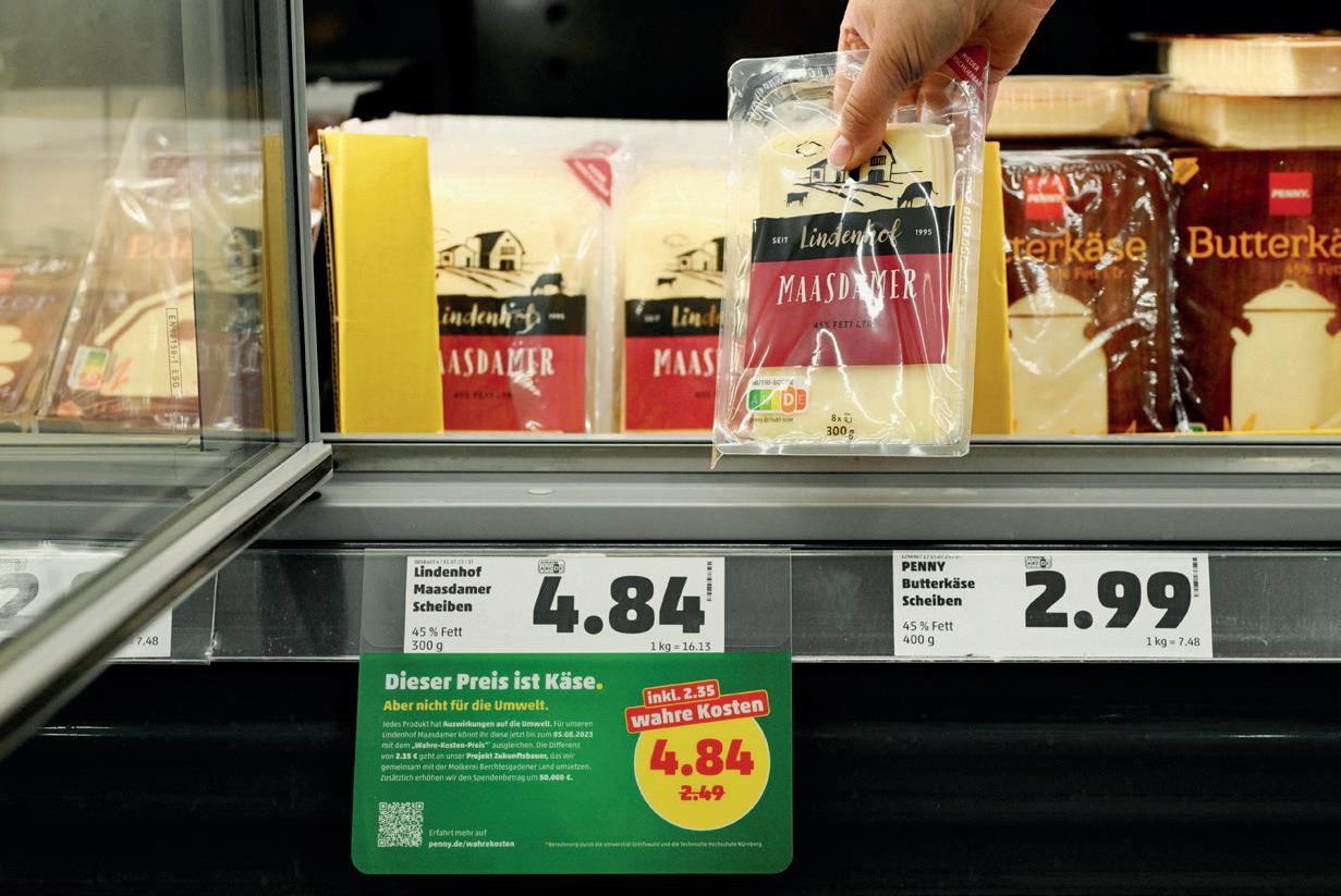 In the week-long experiment in over 2,000 locations of the Penny chain, a range of nine products, mainly dairy and meat, were priced at what experts from two German universities have deemed to be their true cost, in relation to their effect on soil, climate, water use and health.