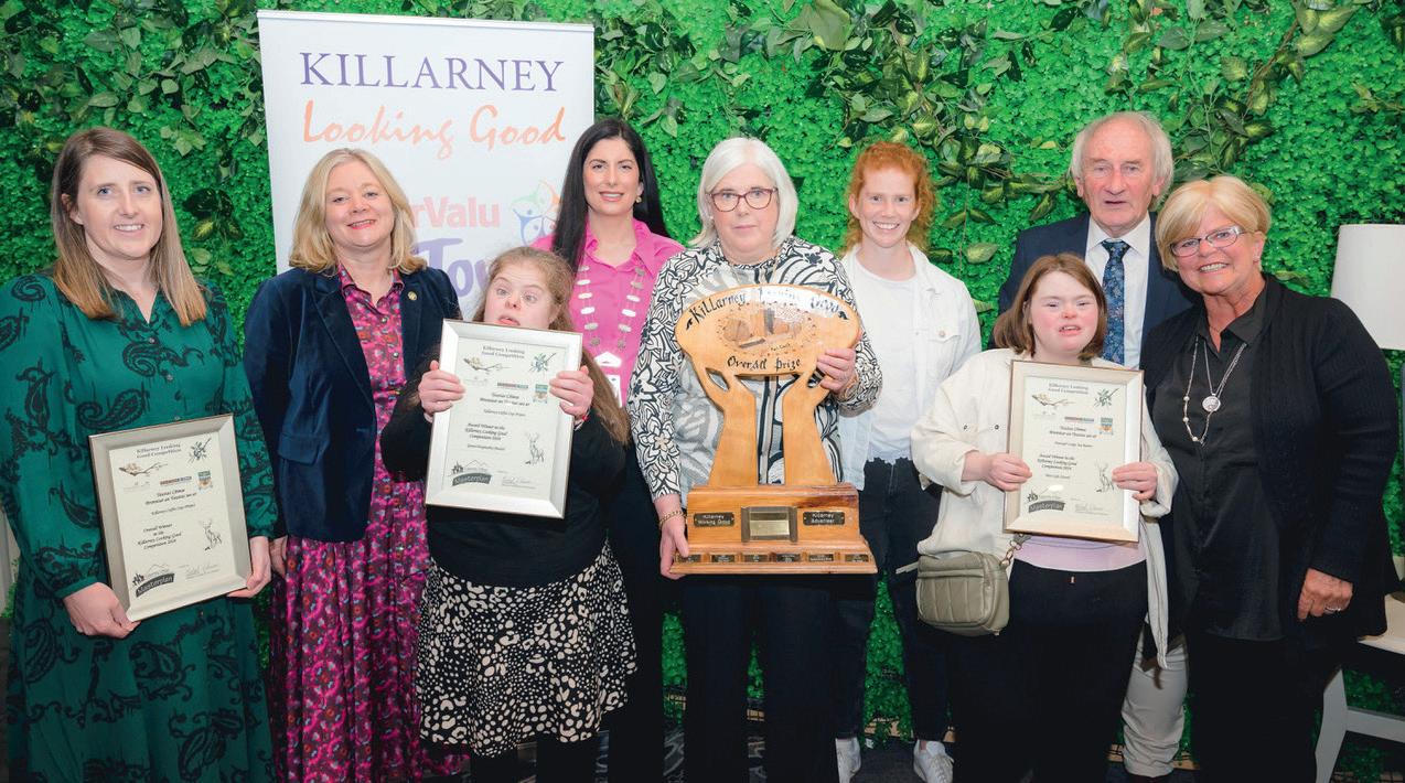 Representatives of the Killarney Coffee Cup project receive the overall Killarney Looking Good Award from Killarney Municipal District Manager Angela McAllen, Mayor of Killarney Maura Healy Rae, special guest Louise Ní
