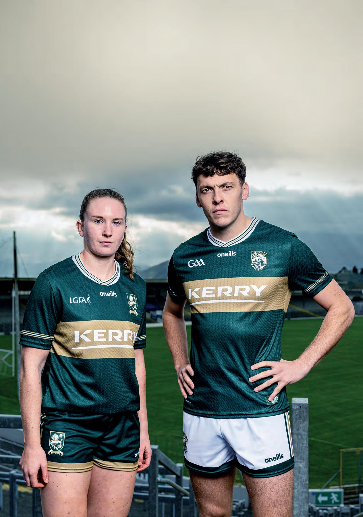 All-Stars Síofra O’Shea and David Clifford were on hand at Killarney’s Fitzgerald Stadium to help launch the new home jersey that will be worn by the Kerry LGFA, Kerry GAA and Kerry Camogie teams for the 2026 season.